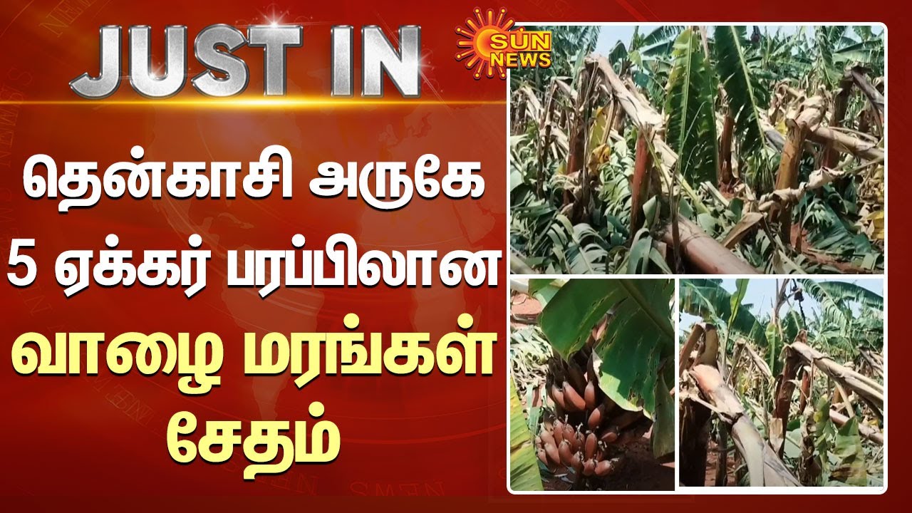தென்காசி அருகே சூறைக்காற்றுடன் பெய்த மழையால் ஏக்கர் பரப்பிலான வாழை மரங்கள் சேதம் - விவசாயிகள் கவலை341826837